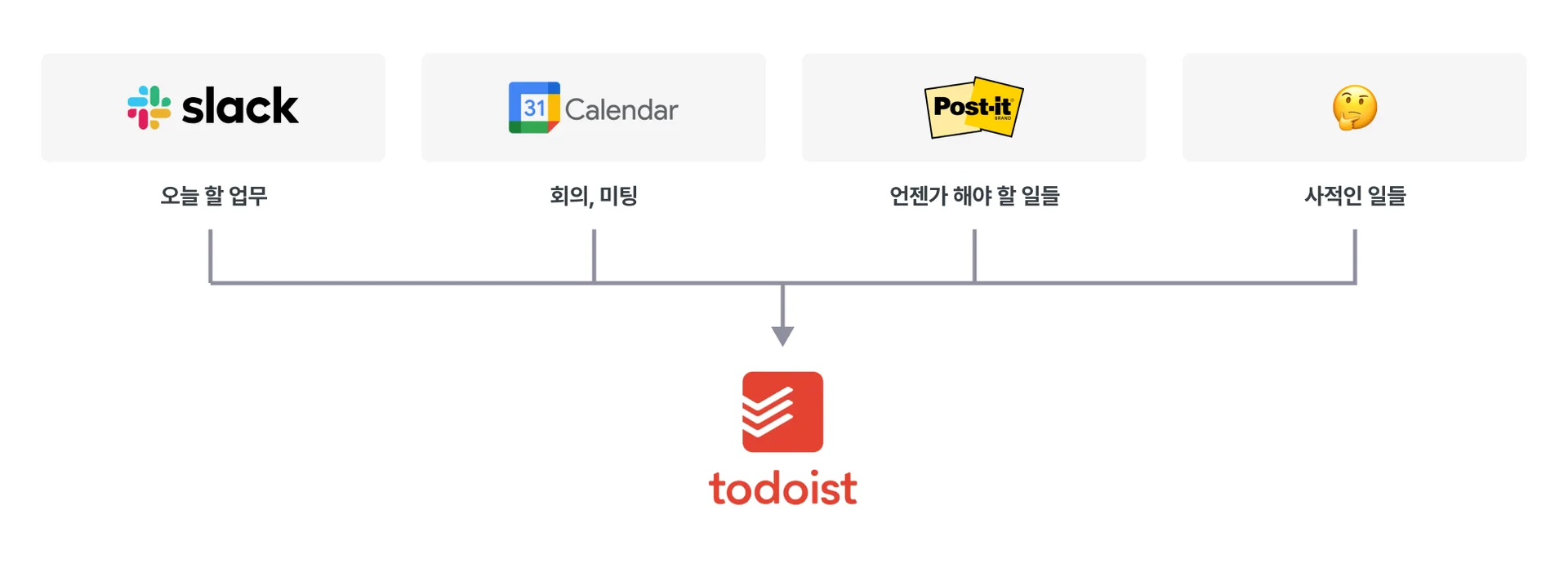 ‘오늘 할 업무’까지 Todoist에 통합하면서, 마지막 한 단계만 남게 되었다.