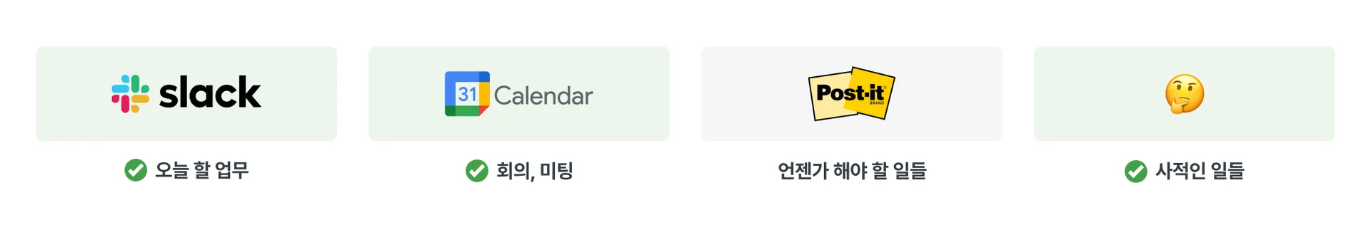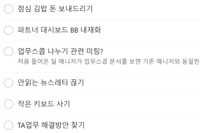 • 업무 외의 사적인 일이나 사소한 작업들은 그냥 머릿속에 기억해 둔다.