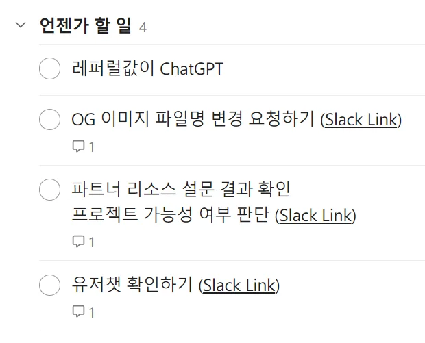 위에서도 언급했지만, 매일마다 오늘의 업무를 팀 슬랙의 데일리 스크럼 채널에 업로드하고 있다. 여기에 작성한 내용 역시 오늘 해야 할 일이니, SSOT 원칙에 따라 Todoist에도 추가해야 한다.